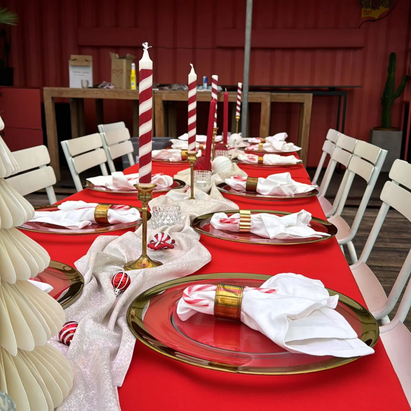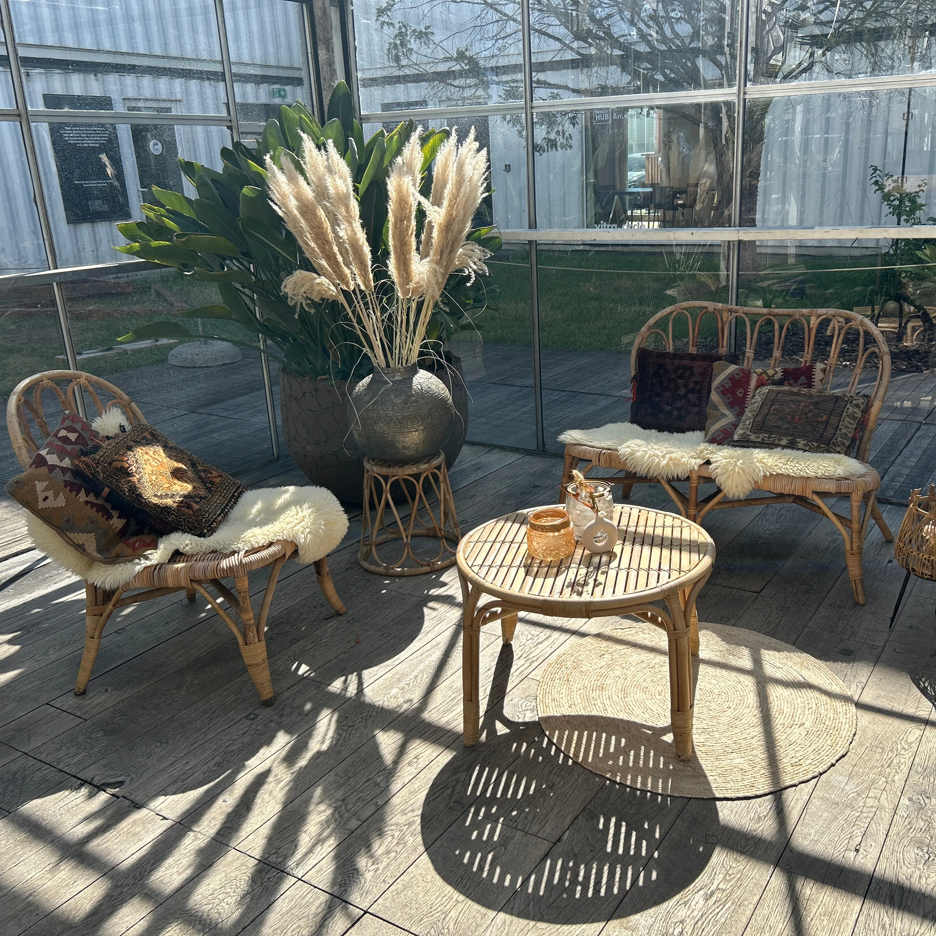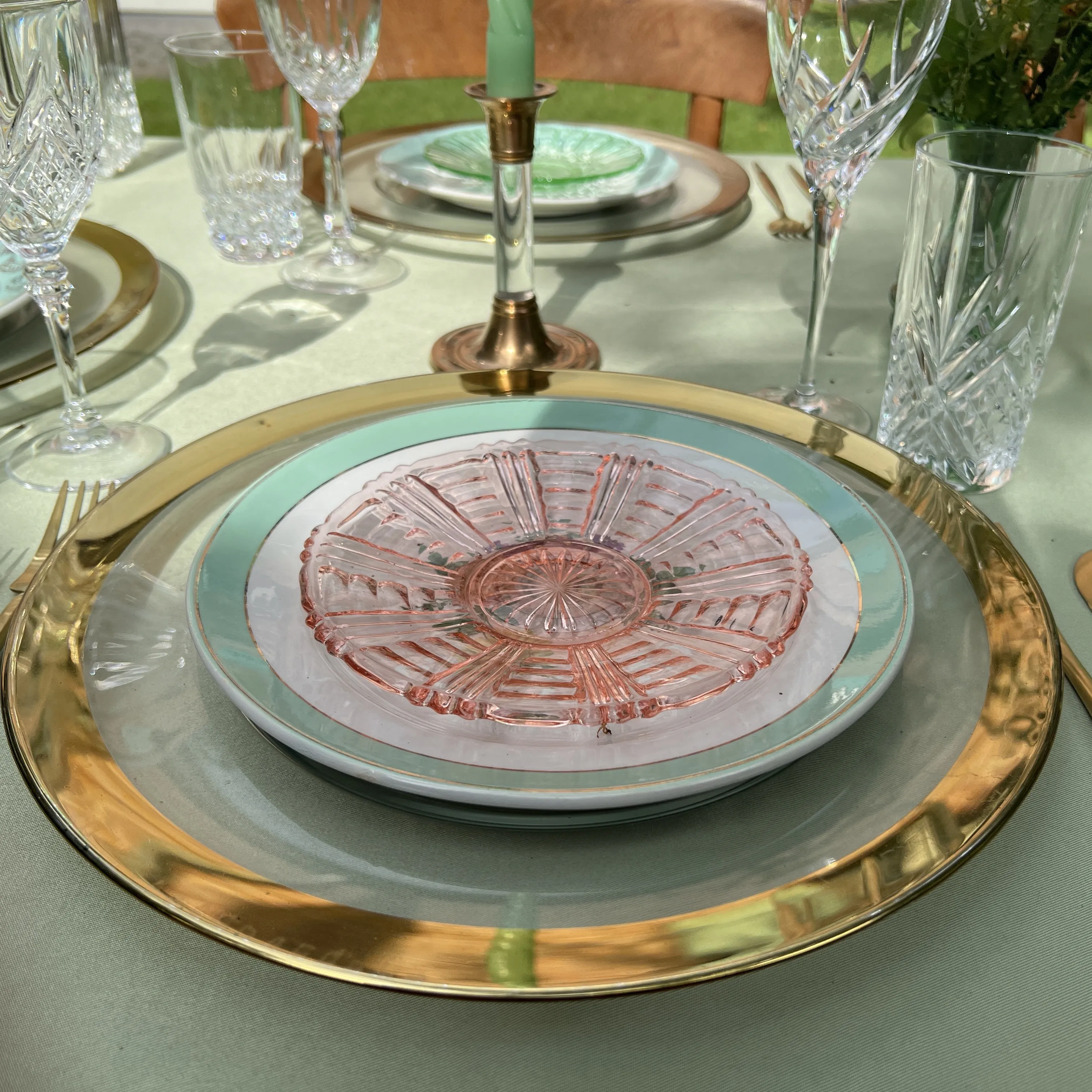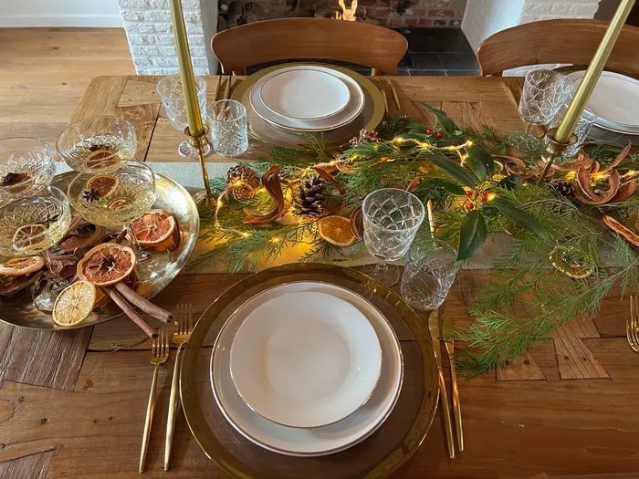 Serviezen met een gouden randje, champagnecoupes waar een prachtige jurk bij hoort, bloemenranden, mooie aardewerk borden, houten schalen, macramé-hangers, vazen waar we gelukkig van worden, ... .
